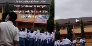 BacaTimes.com – Belakangan beredar video puluhan siswa tak bisa ikut SNMPTN yang berdemo di lapangan sekolah. Pasalnya, mereka tak bisa ikut SNMPTN karena pihak sekolah