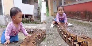 BacaTimes.com – Seorang bocah naik ular piton sambil direkam membuat netizen panik karena dibiarkan oleh kedua orang tuanya. Video bocah naik ular piton tersebut seketika